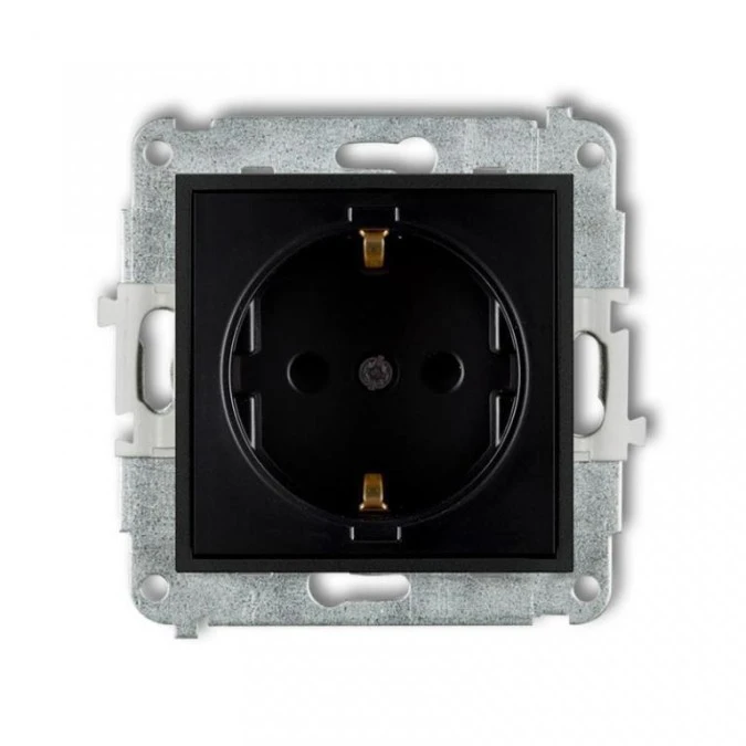 ICON Mechanizm gniazda pojedynczego z uziemieniem 2P+Z czarny mat 12IGP-1z KARLIK