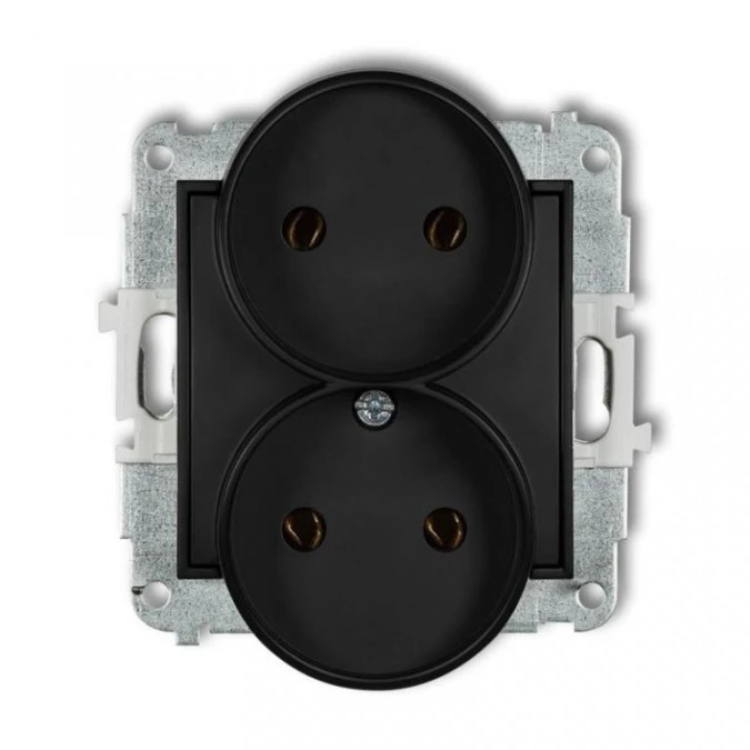 1. MINI Gniazdo podwójne z uziemieniem do ramki (bez przesłon torów prądowych) czarny mat 12MGPR-2z KARLIK 24.23