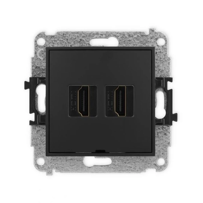 2. MINI Mechanizm gniazda podwójnego HDMI 2.1, 8K, bez pola opisowego czarny mat 12MHDMIBO-6 222.74