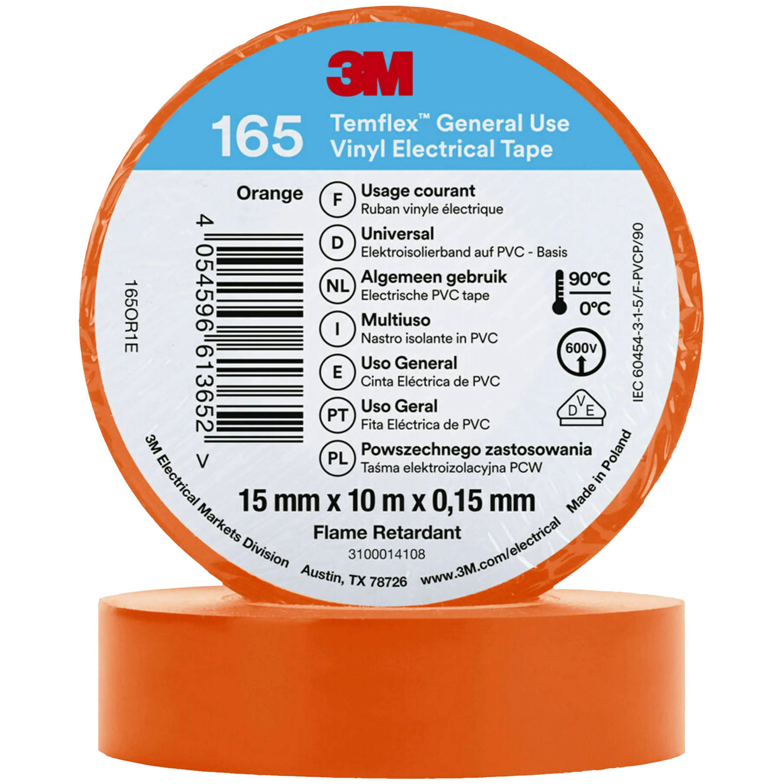 3. 3M 165OR1E Temflex™ 165 Electrical Tape Orange 10 m x 15 mm 1 pc 36.62