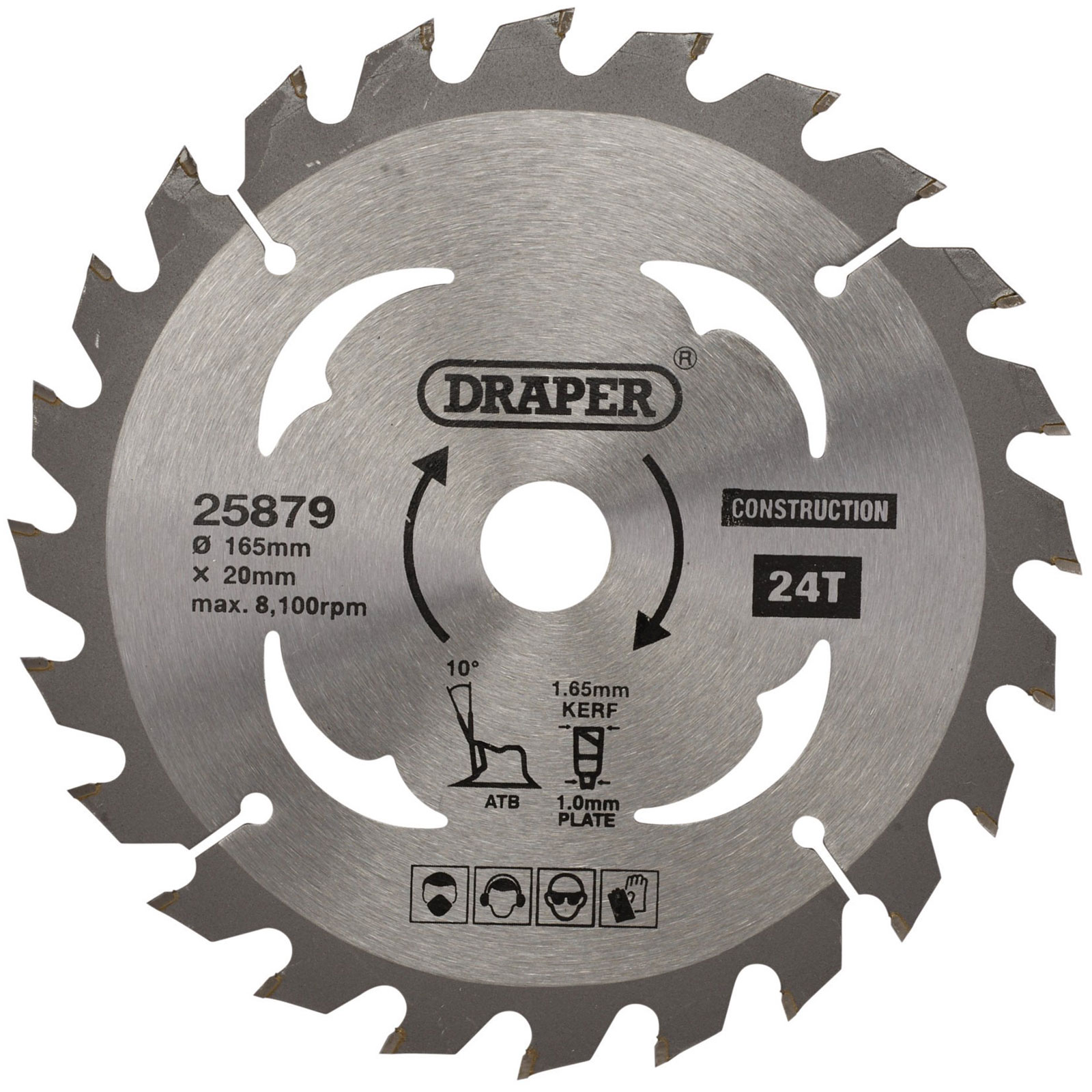 Draper 25879 TCT Cordless Construction C/Saw Blade-Wood-Composites 165x20mm 24T