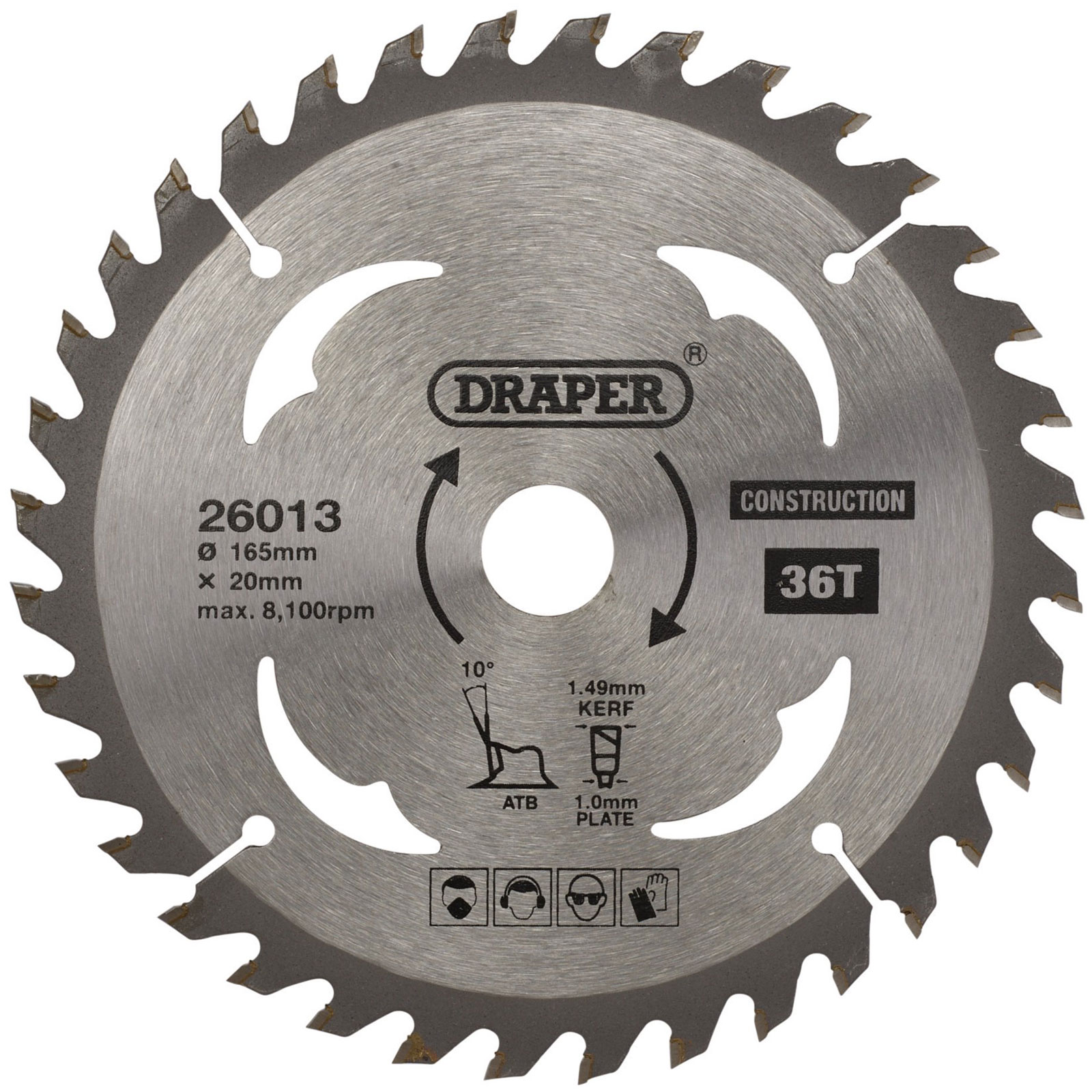 10. Draper 26013 TCT Cordless Construction C/Saw Blade-Wood-Composites 165x20mm 36T 50.58