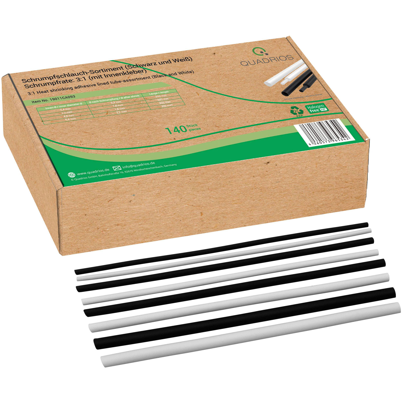 Quadrios 19011CA093 Heatshrink Set 140 Black/White 3:1 Shrinkage