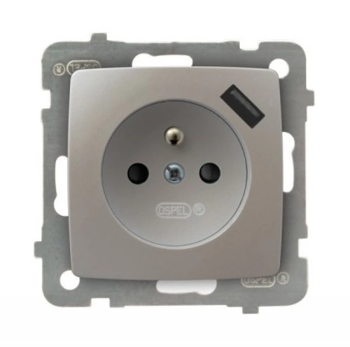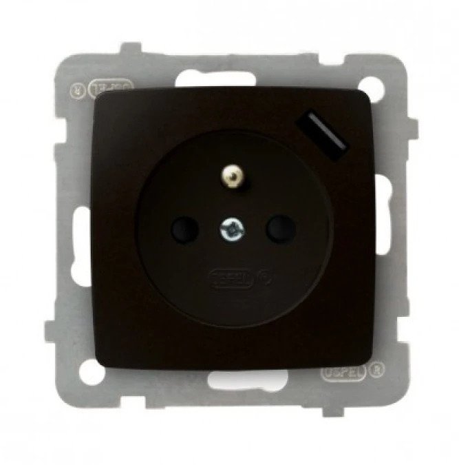 KARO Gniazdo pojedyncze z uziemieniem z przesłonami torów prądowych z ładowarką USB czekoladowy metalik GP-1SZPUSB/m/40 OSPEL