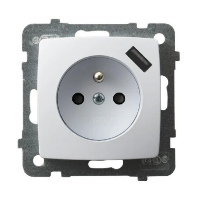 KARO Gniazdo pojedyncze z uziemieniem z przesłonami torów prądowych z ładowarką USB biały GP-1SZPUSB/m/00 OSPEL
