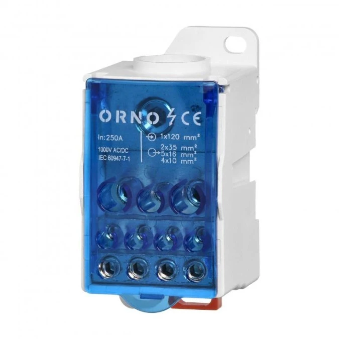Blok rozdzielczy 250A, zacisk wejściowy 1x120mm², zaciski wyjściowe 4x10 i 5x16 i 2x25mm² OR-LZ-8207/250