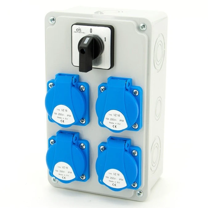Rozdzielnica budowlana 4*GS 230V + wyłącznik tablicowy 0-1, obudowa naścienna, ELS Elektrotechnika, N400-01