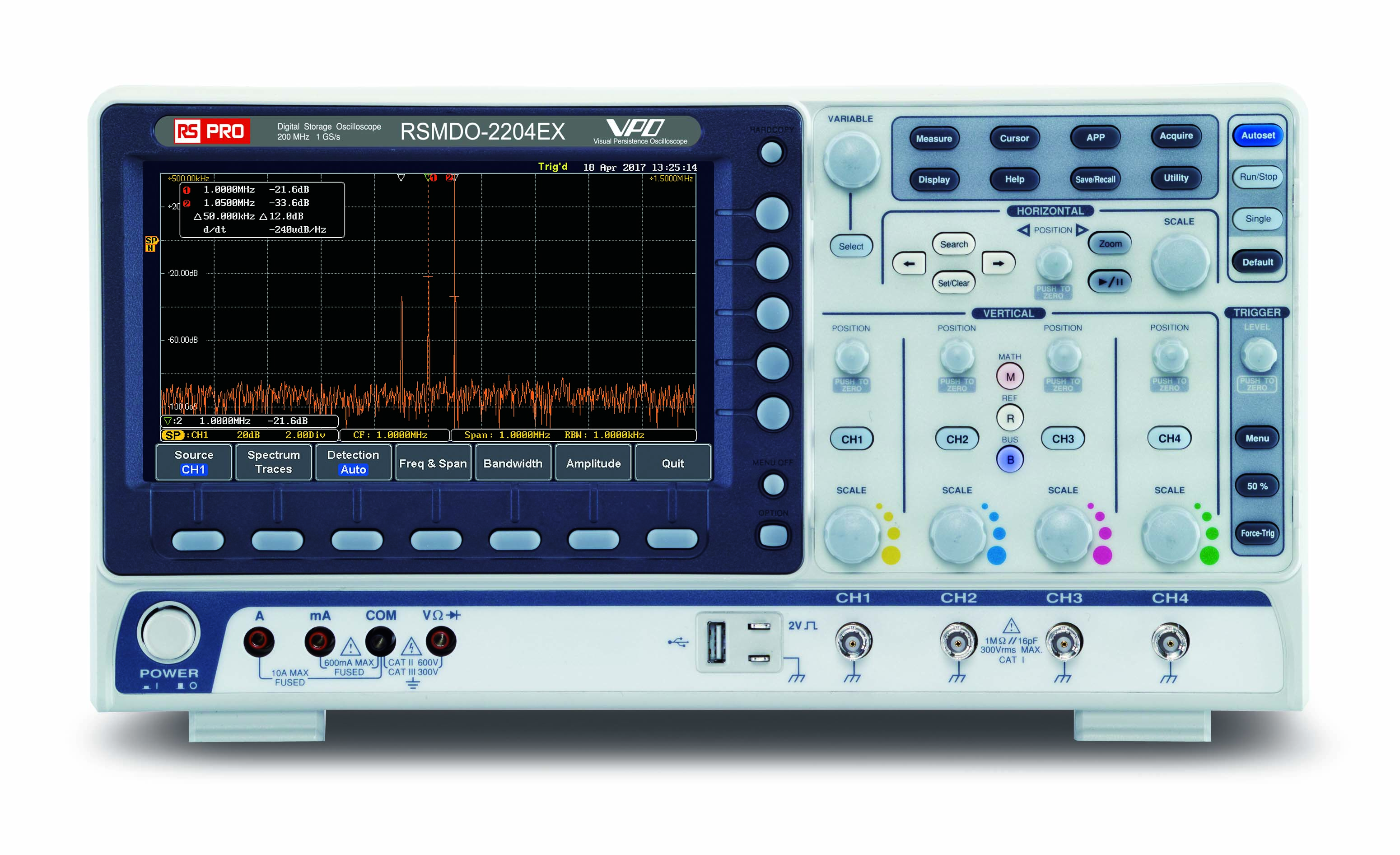 5. Oscyloskop mieszanych domen sygnałów 200MHz RS PRO Cyfrowa pamięć masowa CAT I 300V RSMDO-2204EX z kalibracją ISO CAN, 14827.59