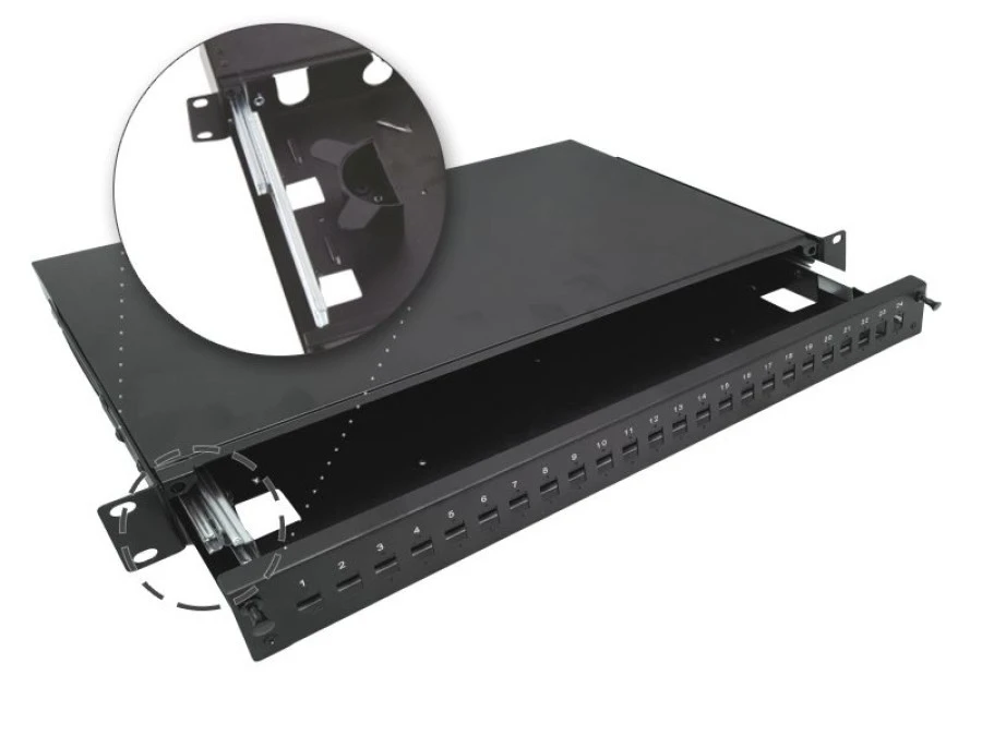Panel światłowodowy 1U z wysuwaną tacką do montażu ...
