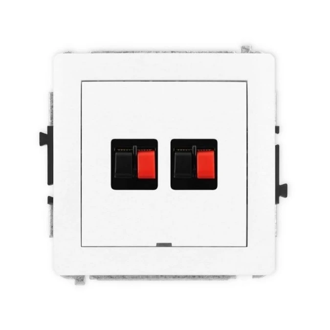 DECO Mechanizm gniazda głośnikowego podwójnego, bez pola opisowego biały mat 25DGGBO-2 KARLIK