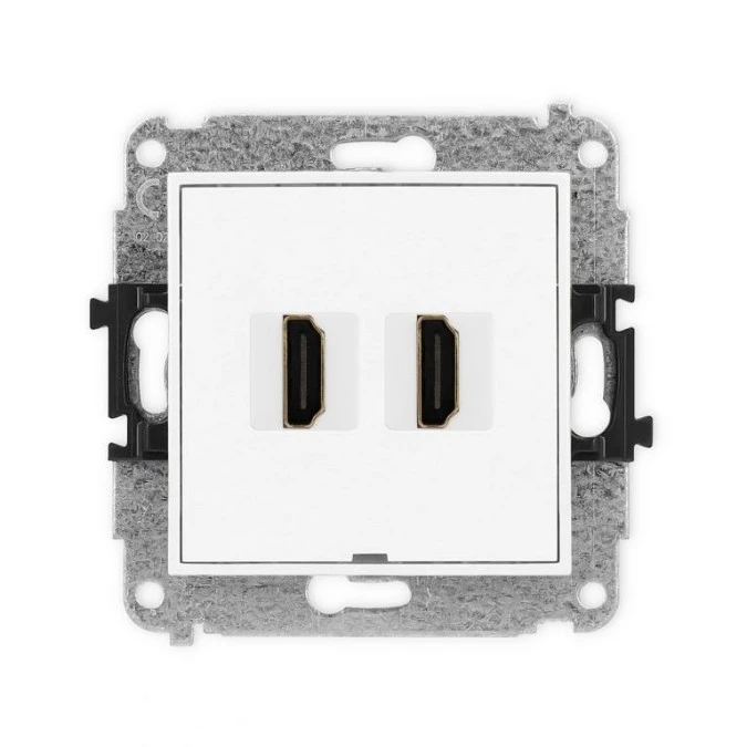 ICON Mechanizm gniazda podwójnego HDMI 2.1, 8K, bez pola opisowego biały mat 25IHDMIBO-6