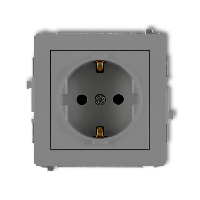 DECO Gniazdo pojedyncze z uziemieniem schuko (przesłony torów prądowych) szary mat 27DGP-1sp KARLIK