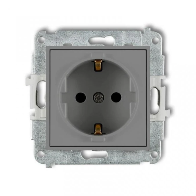 1. ICON Mechanizm gniazda pojedynczego z uziemieniem 2P+Z szary mat 27IGP-1z KARLIK 17.77