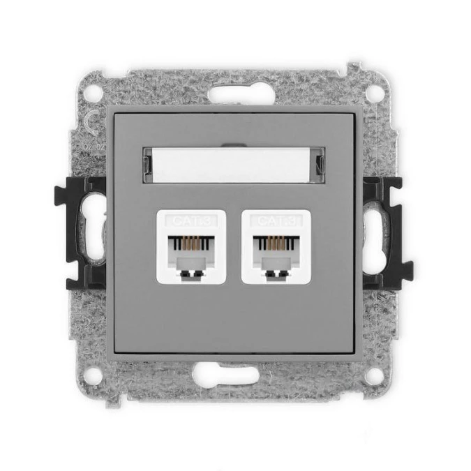 ICON Mechanizm gniazda telefonicznego podwójnego 2xRJ11, 4-stykowy, beznarzędziowe szary mat 27IGT-2