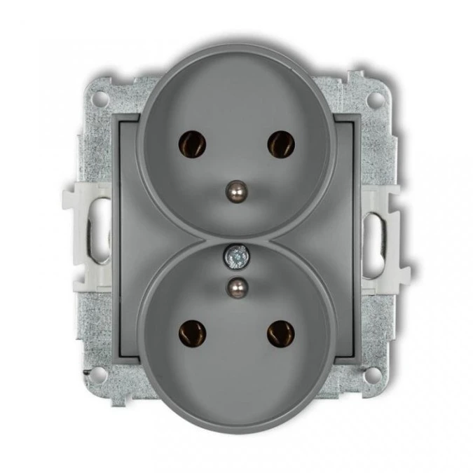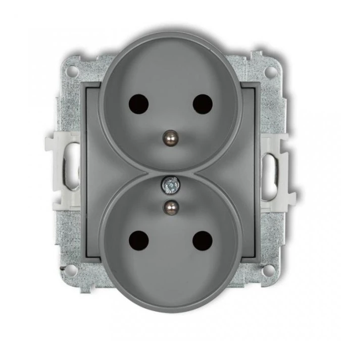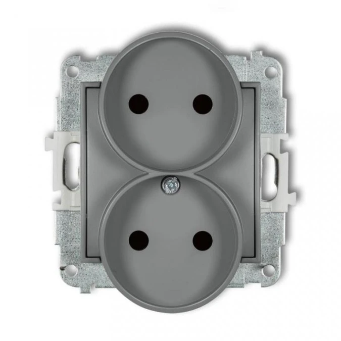 1. MINI Gniazdo podwójne bez uziemienia do ramki (bez przesłon torów prądowych) szary mat 27MGPR-2 KARLIK 20.26