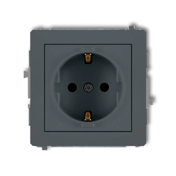 DECO Gniazdo pojedyncze z uziemieniem schuko (przesłony torów prądowych) grafitowy mat 28DGP-1sp KARLIK