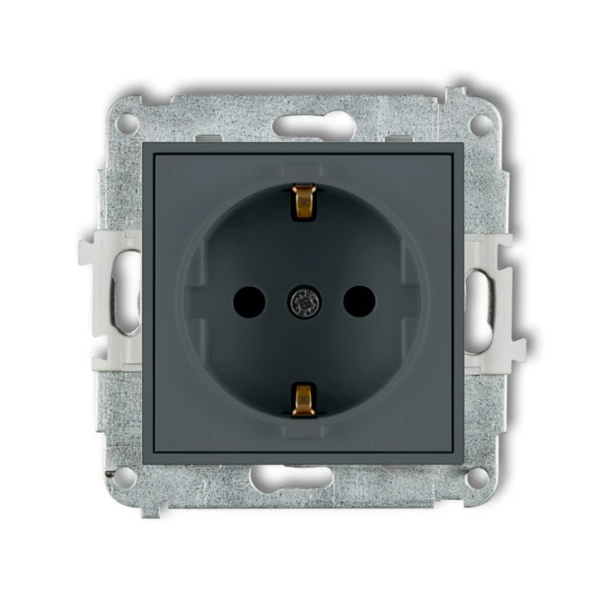 MINI Gniazdo pojedyncze z uziemieniem schuko (przesłony torów prądowych) grafitowy mat 28MGP-1sp KARLIK