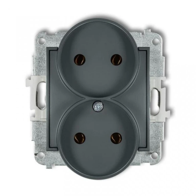 3. MINI Gniazdo podwójne bez uziemienia do ramki (przesłony torów prądowych) grafitowy mat 28MGPR-2p KARLIK 21.30