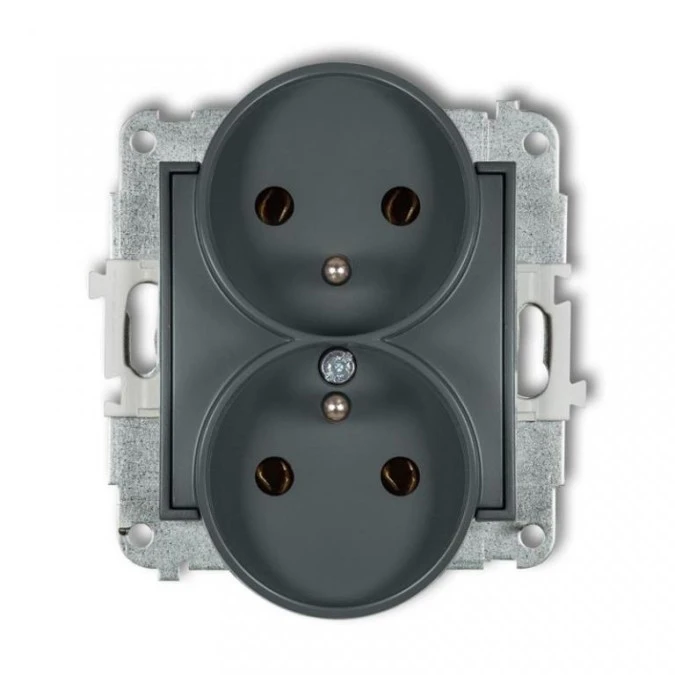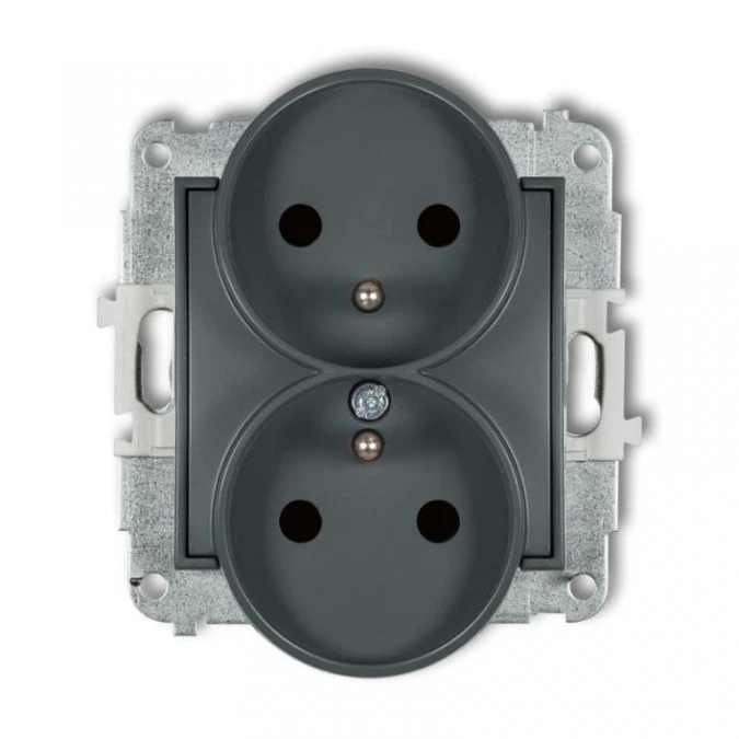 MINI Gniazdo podwójne z uziemieniem do ramki (przesłony torów prądowych) grafitowy mat 28MGPR-2zp KARLIK
