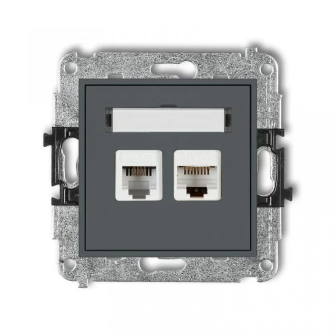 MINI Gniazdo telefoniczne 1xRJ11 + gniazdo komputerowe 1xRJ45 kat.5e 8-stykowy beznarzędziowe grafitowy mat 28MGTK KARLIK