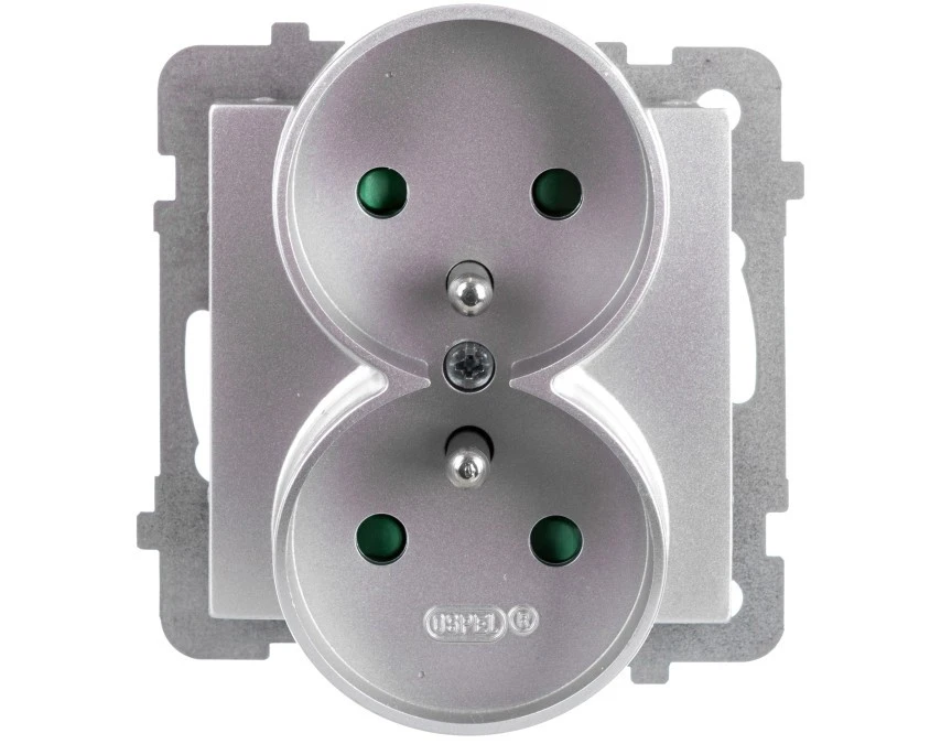 AS Gniazdo podwójne z uziemieniem do ramki z przesłonami srebrne GP-2GRZP/m/18 OSPEL