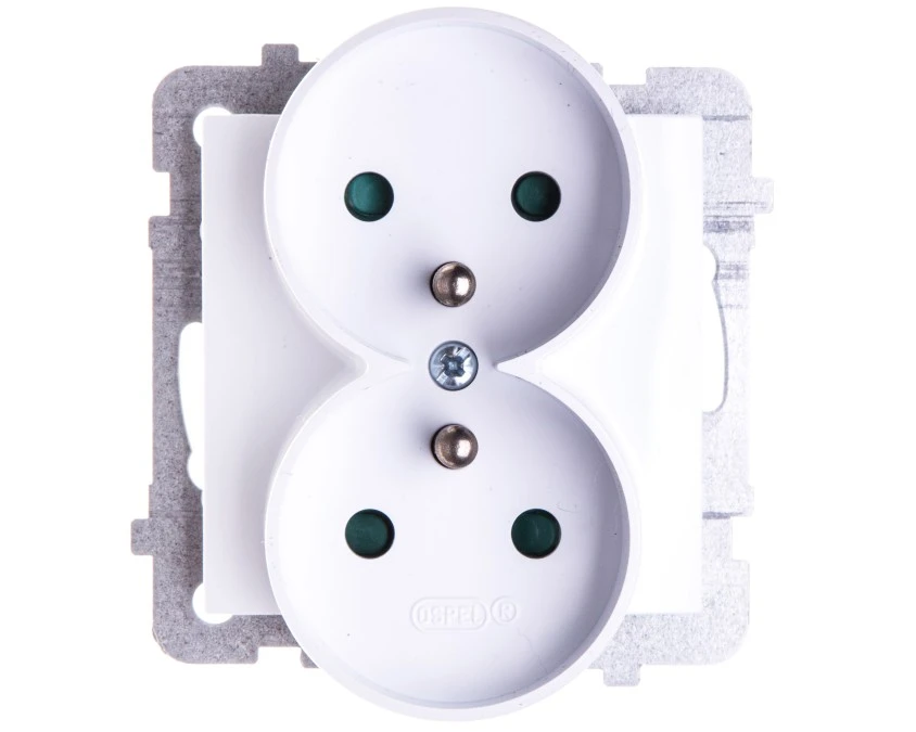 4. AS Gniazdo podwójne z uziemieniem do ramki z przesłonami białe GP-2GRZP/m/00 OSPEL 16.19