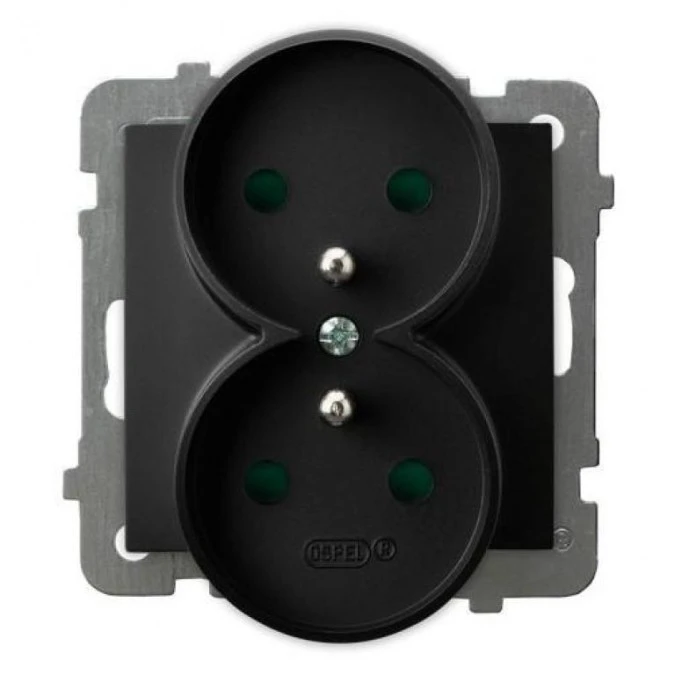 AS Gniazdo podwójne z uziemieniem z przesłonami torów prądowych, moduł bez ramki czarny metalik GP-2GRZP/m/33