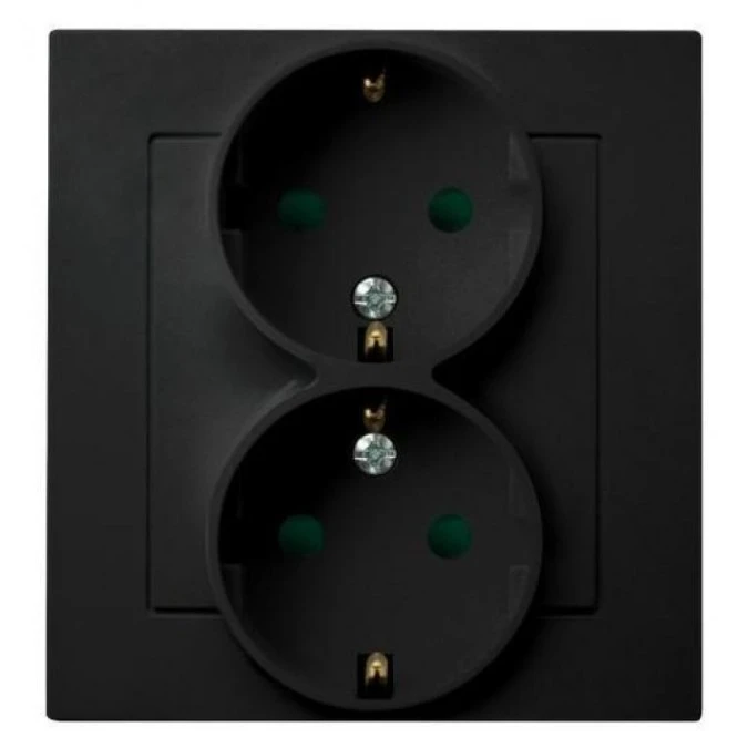 AS Gniazdo podwójne z uziemieniem schuko z przesłonami torów prądowych, kompletne z ramką czarny metalik GP-2GSP/33