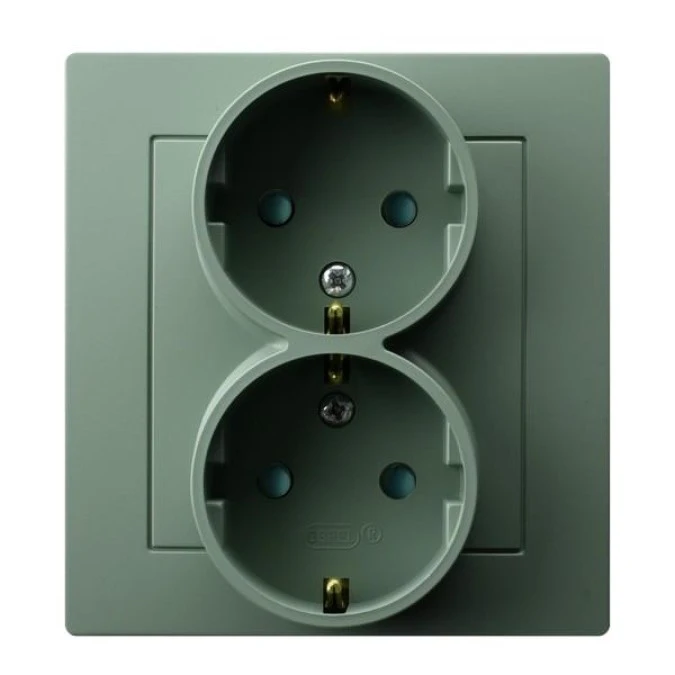 AS Gniazdo podwójne z uziemieniem schuko z przesłonami torów prądowych, kompletne z ramką zielony mat GP-2GSP/84