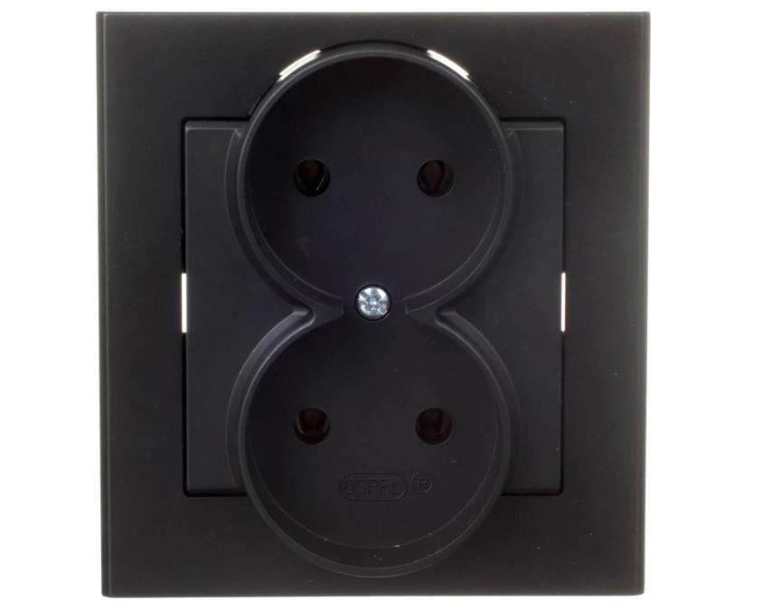 SONATA Gniazdo podwójne bez uziemienia z ramką czarny metalik GP-2R/33 OSPEL