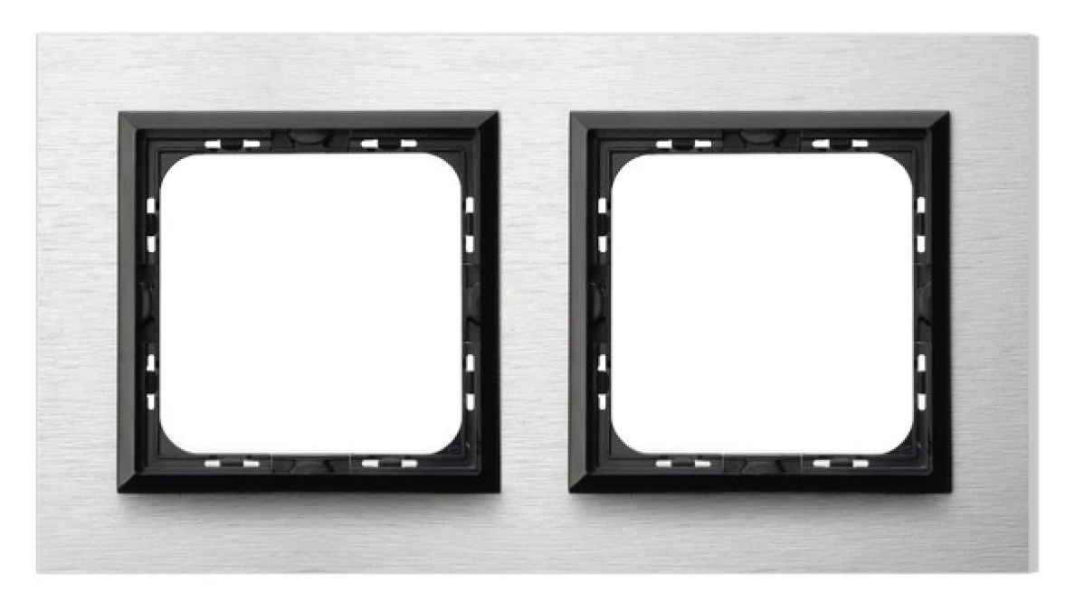 9. SONATA PRESTIGE Ramka 2 podwójna aluminiowa 4 mm szczotkowane aluminium + ramka czarna R-2RAC/62/25 OSPEL 109.26