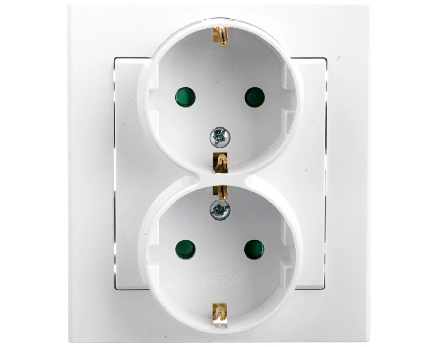SONATA Gniazdo podwójne z uziemieniem schuko IP20 z przesłonami z ramką biały GP-2RSP/00 OSPEL