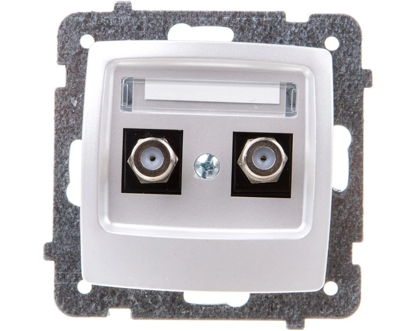 KARO Gniazdo antenowe podwójne typu "F" srebrny perłowy GPA-2SF/m/43 OSPEL