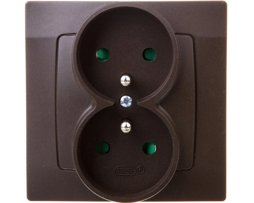 7. KARO Gniazdo podwójne z uziemieniem z przesłonami IP-20 zaciski gwintowe czekoladowy metalik GP-2SZP/40 OSPEL 26.95
