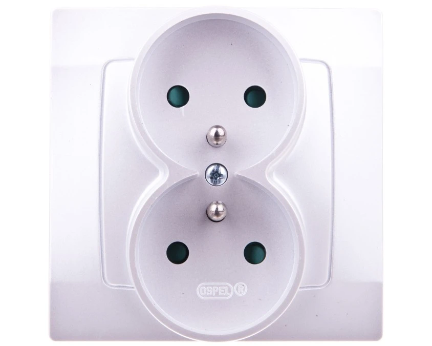 KARO Gniazdo podwójne z uziemieniem z przesłonami IP-20 zaciski gwintowe biały GP-2SZP/00 OSPEL