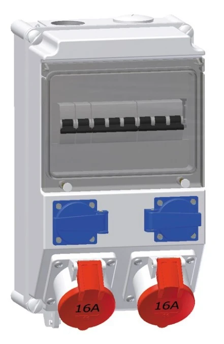 8. Rozdzielnica naścienna 2x16A 230V, 2xCEE 16A 5P 400V, 2xB16/1, 2xC16/3, IP44 511546 833.19