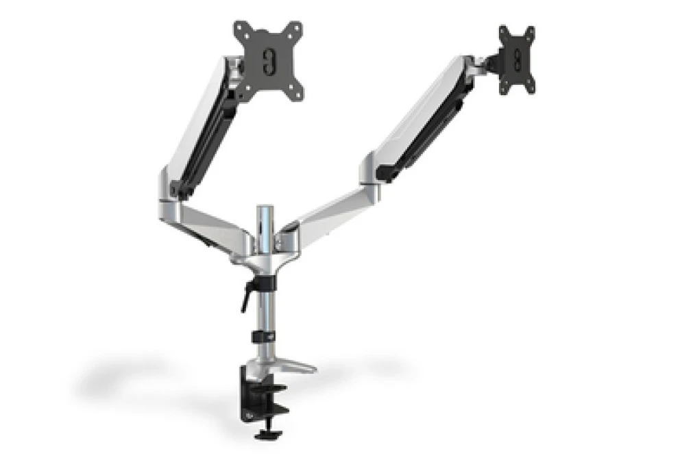 Ramię biurkowe podwójne z zaciskiem, regulowany, 2xLCD, max. 27, max. 8kg, uchylno-obrotowe 360 DA-90353