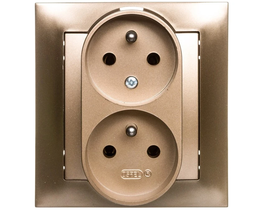Impresja Gniazdo Podwójne Z/U Z Niezamiennością Faz Złoty Metalik Gp-2Yc/28