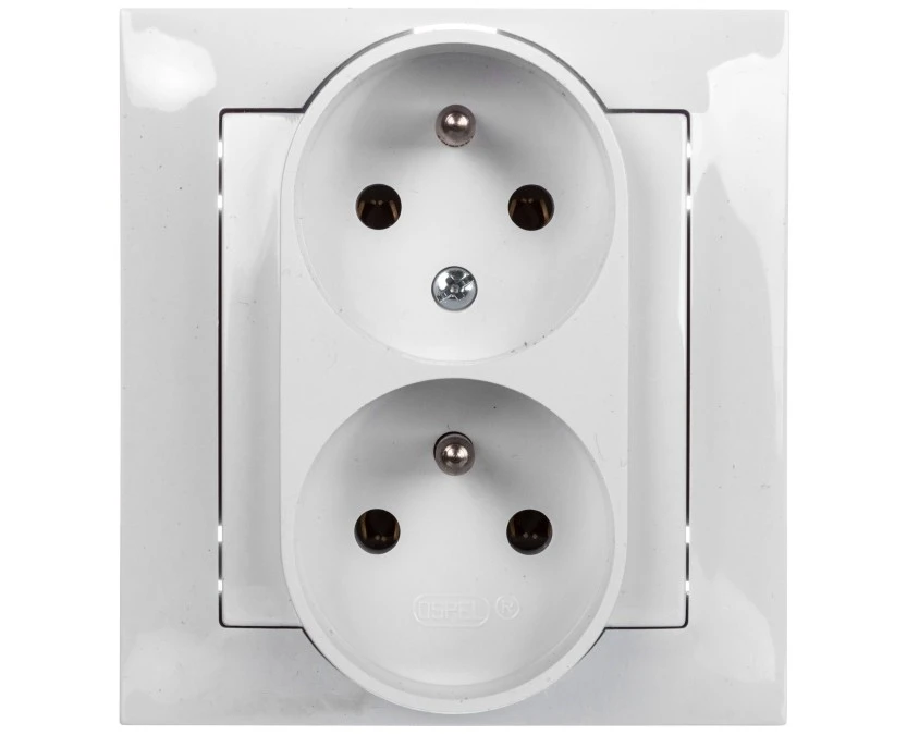 6. IMPRESJA Gniazdo podwójne z uziemieniem z funkcją niezamienności faz kompletne z ramką biały GP-2YC/00 OSPEL 23.07