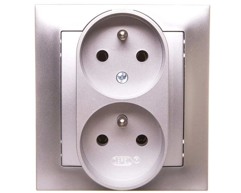 Impresja Gniazdo Podwójne Z/U Z Niezamiennością Faz Srebrne Gp-2Yc/18