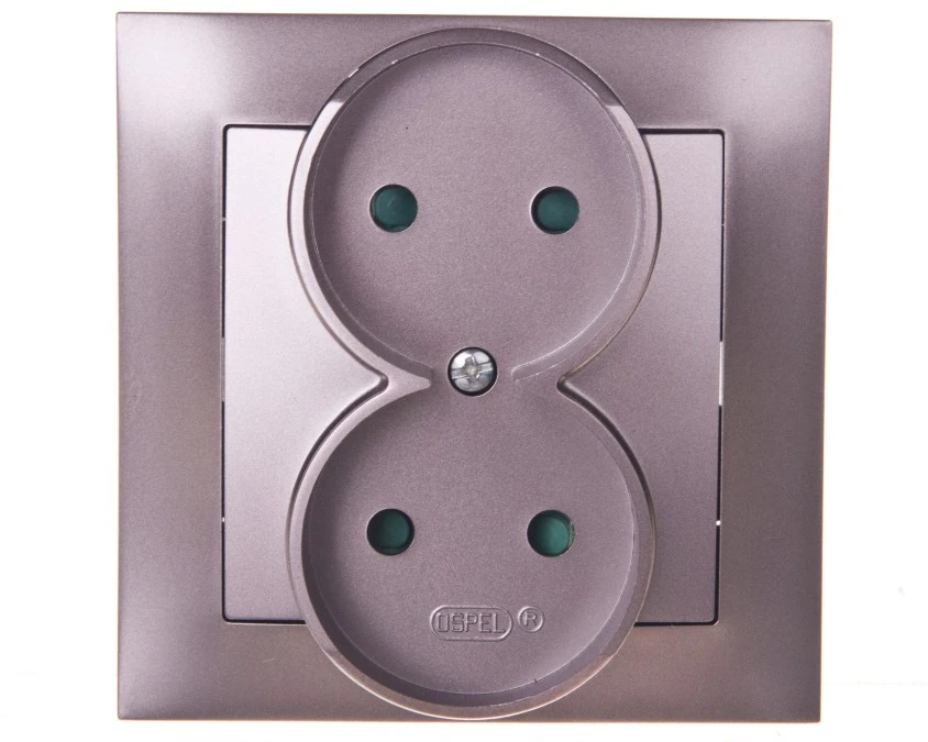 9. IMPRESJA Gniazdo podwójne bez uziemienia z przesłonami torów prądowych kompletne z ramką biały GP-2YP/00 OSPEL 21.96