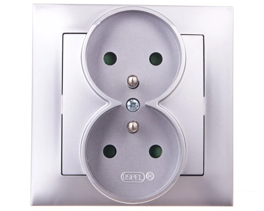 Impresja Gniazdo Podwójne Z/U Z Przesłonami Srebrne Gp-2Yzp/18