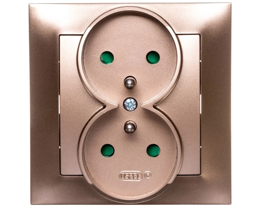 Impresja Gniazdo Podwójne Z/U Z Przesłonami Złoty Metalik Gp-2Yzp/28
