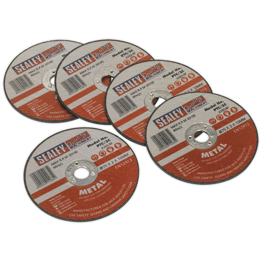 Sealey PTC/3C5 Cutting Disc Ø75 x 2mm 10mm Bore Pack of 5