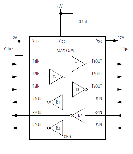 ±15kV ESD-Protected, EMC Compliant, 230kbps, 3 Tx/3 Rx RS-232 IC