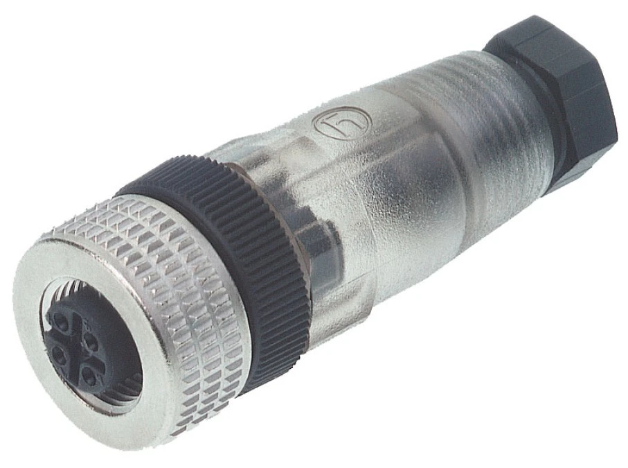ELKA 4012PG7 Au, M12, 4 styki (złocone), złącze żeńskie (gniazdo) proste, dławik PG7 (4-6mm), nakrętka metalowa, czarne, Hirschm