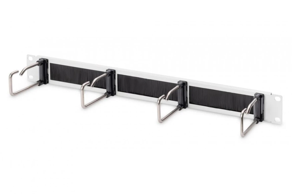 Organizator kablowy ze szczotką 19 1U, 4x uchwyty stalowe, 40x75 mm, szary DN-97668