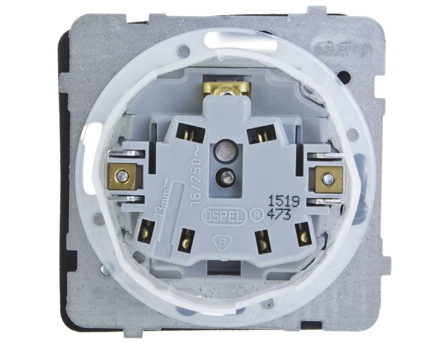 8. KARO Gniazdo pojedyncze z uziemieniem IP44 z przesłonami zaciski gwintowe srebrny perłowy GPH-1SZP/m/43/d OSPEL 26.43