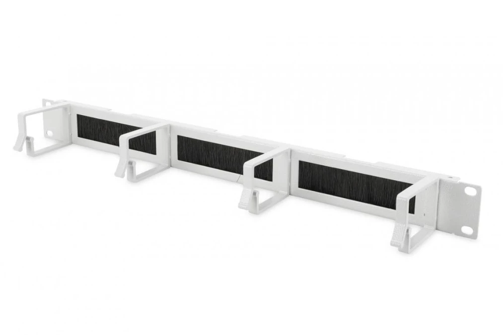 Organizator kablowy ze szczotką 19 1U 4x uchwyty aluminiowe 44x72mm szary DN-97662