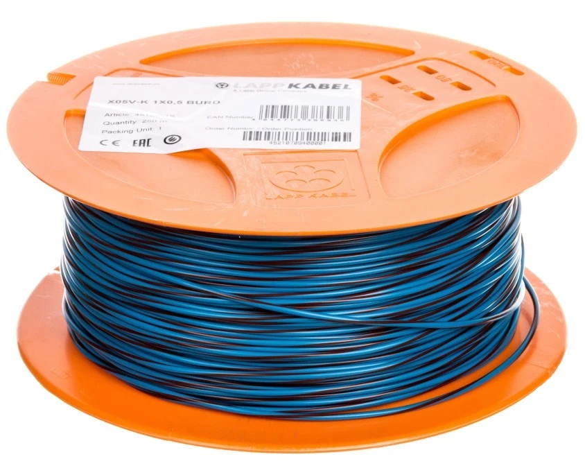 1. LAPP 4512251S X05V-K Single Core Copper Wire, Blue/Red Sleeve 0.50mm² 43.44